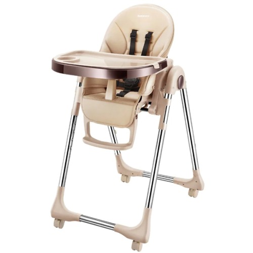 Стульчик для кормления Baoneo для детей от рождения до 3 лет, максимальный вес ребёнка 20 килограмм. Спинка раскладывается до 170 градусов, благодаря колёсам стульчик легко перемещается.