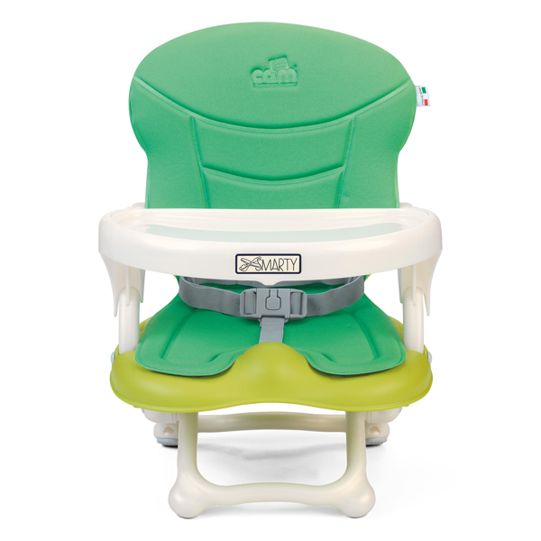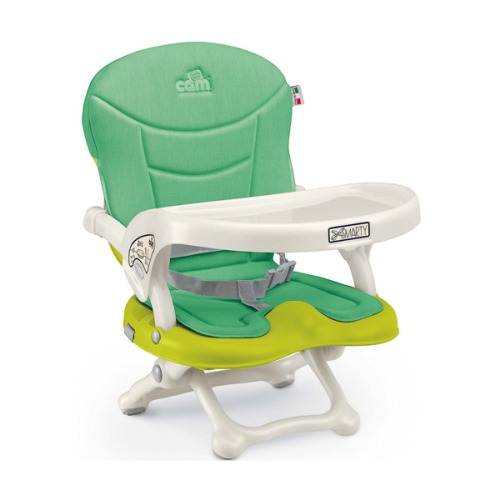 Cam Smarty Pop - переносной стульчик для кормления для детей от 6-ти до 26-ти месяцев, крепится к стулу взрослых, может быть использован как в гостиничном номере, так и при походе в кафе или ресторан. Модель оснащена уникальным механизмом фиксации, благодаря чему прочно и надежно крепится на любом взрослом стуле. Smarty Pop регулируется по высоте в 4 позициях, имеет пластиковый столик для малышей. Удобное мягкое сиденье эргономичной формы оснащено трёхточечными ремнями безопасности. Стульчик имеет противоскользящие упоры. Модель легко и компактно складывается, в сложенном виде занимает мало места.