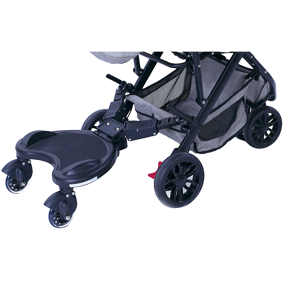 Carrello Kiddy Board - подножка для второго ребенка, рассчитана на детей от 2 до 5 лет, максимальный вес 25 кг. Хорошо сбалансированная технология обеспечивает плавность хода даже на неровных дорогах, подножка выполнена из прочных материалов и подходит практически к любой прогулочной коляске, благодаря универсальному креплению. Маневренность подножки обеспечивают два поворотных полиуретановых колеса-ролика. В комплекте мягкая накладка на сиденье и ремень безопасности.