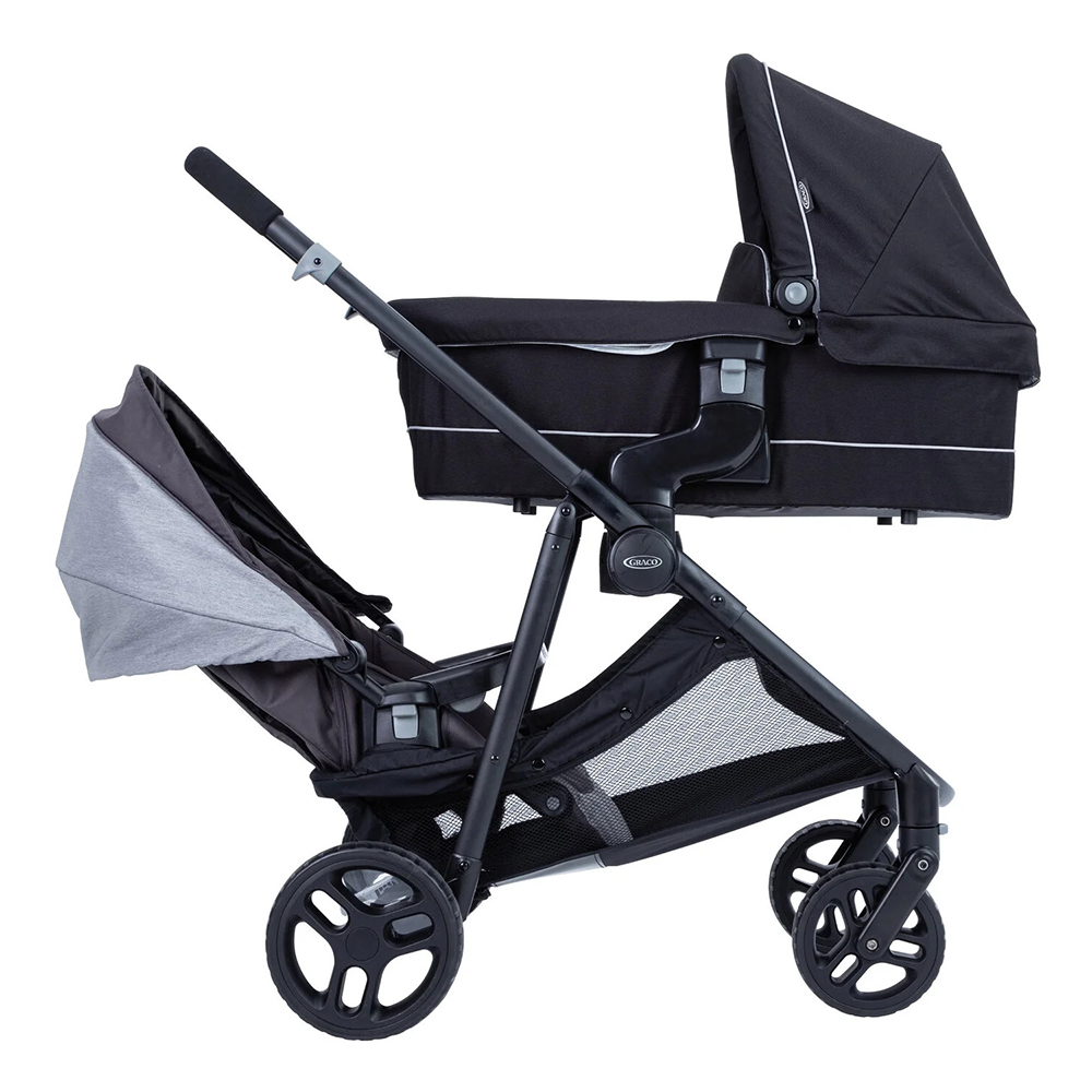 Graco Time2Grow - функциональная коляска для погодков с возможностью одновременной установки люльки и прогулочного сиденья. Компактное складывание, удобная для путешествий и ежедневного использования. Рассчитана для детей до 4х лет ( до 22 кг). Универсальна для семей с погодками.