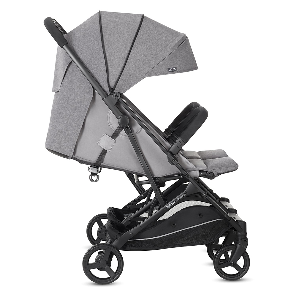 Inglesina Twin Sketch - лёгкая и компактная прогулочная коляска для близнецов или погодок. Подходит для детей от 7 месяцев и до достижения веса 15 килограмм каждым ребенком. Благодаря небольшому весу (всего лишь 12,5 кг) и компактности легко транспортируется и занимает мало места при хранении.